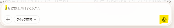 下の画面の状態でマイクに喋るとCopilotと会話を行うことができます。