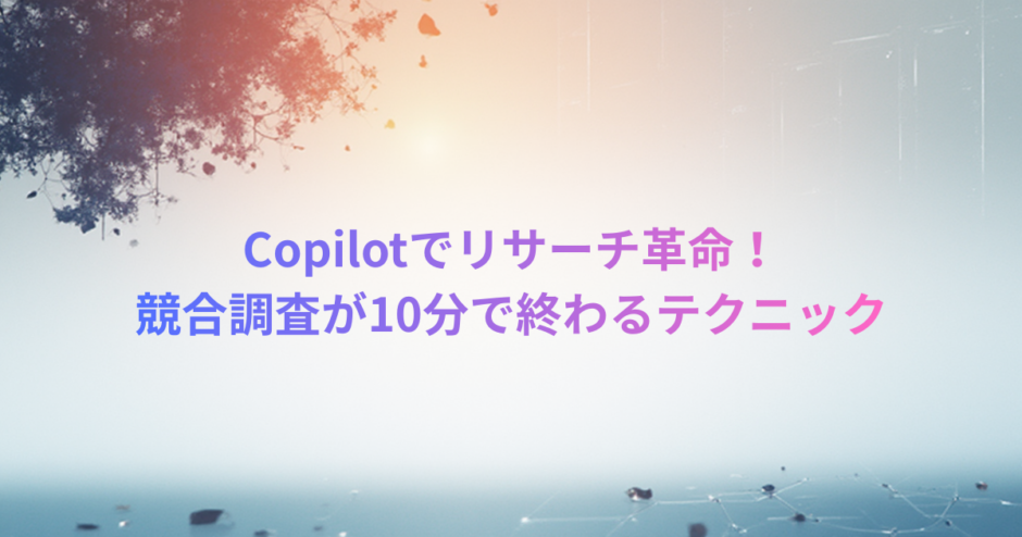 AIアシスタント「Copilot」の登場で、私のリサーチ業務は劇的に変わりました。これまで数時間、時には半日かかっていた作業が、わずか10分で完了するようになったのです。