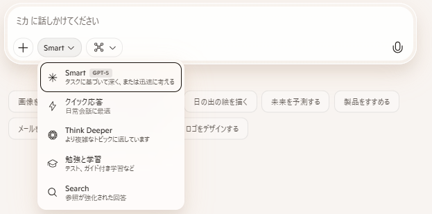 Microsoft Copilot(無料版)を開いたとき、「Smart」や「Think Deeper」といった新しい選択肢に戸惑ったことはありませんか?